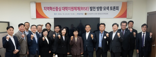 인천시의회 행정안전위원회는 최근 세미나실에서 김재동 위원장을 비롯해 소속 유승분·김대영·김명주·신동섭·신영희·임춘원 의원, 정연화 인천시 교육협력담당관, 지역 내 대학 관계자 등이 참석한 가운데 ‘지역혁신중심 대학지원체계 발전 방안 모색 토론회’를 개최했다고 24일 밝혔다.